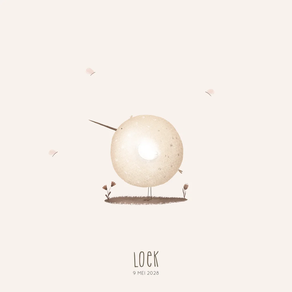Een lief geboortekaartje voor een jongen of meisje met getekend vogeltje en vlindertjes. Met de online editor kun je dit geboortekaartje helemaal naar wens aanpassen.