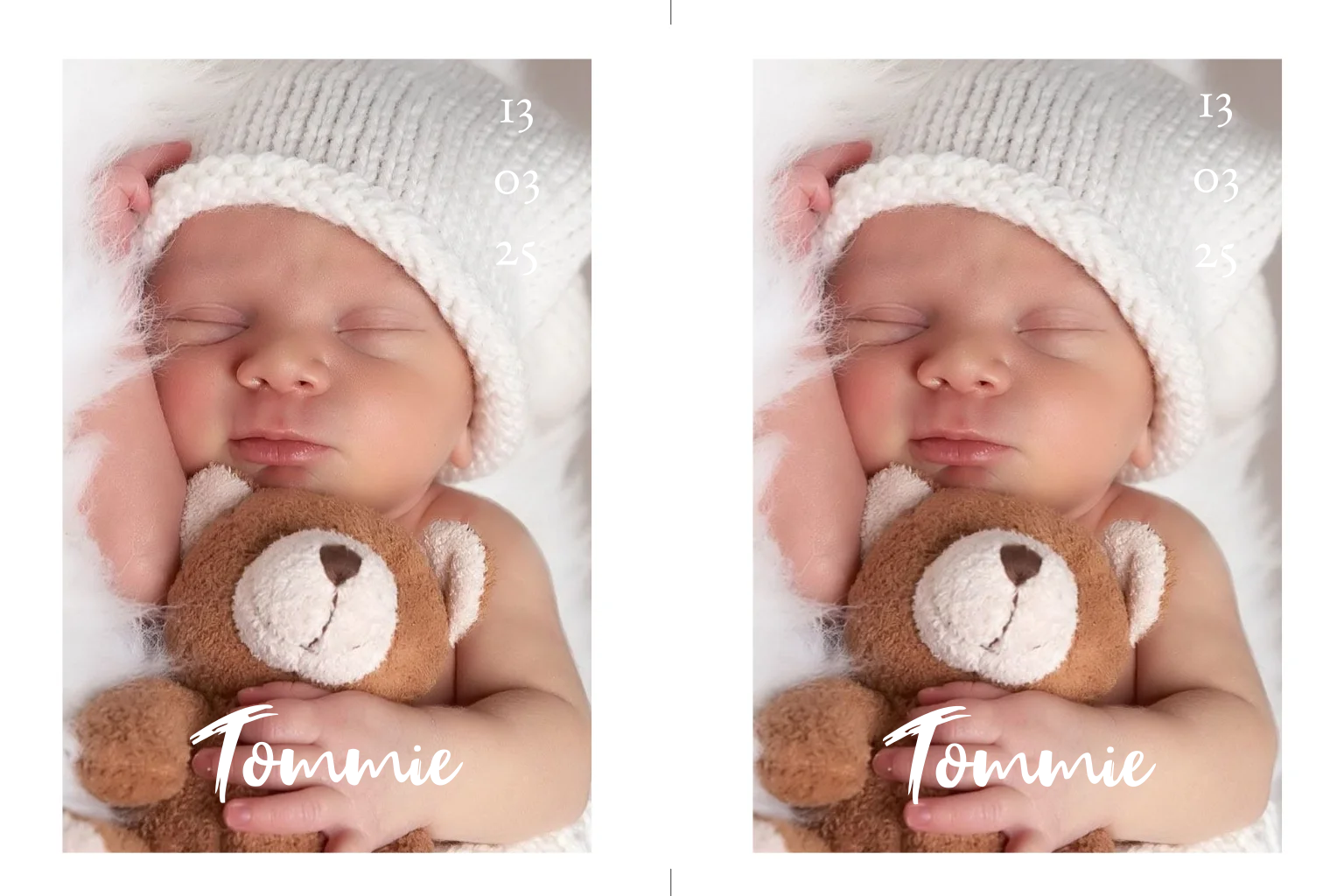 Een leuk DIY fotolabel met goudfolie en een mooie foto van jullie pasgeboren kindje. Zo maak je het geboortekaartje nog persoonlijker en verras je de familie en vrienden alvast met een eerste foto van jullie baby. Bevestig het labeltje met een paperclip, een mooi lint of touwtje aan jullie geboortekaarten.