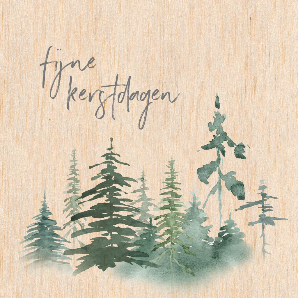 Houten kerstkaart met kerstbomen in aquarelstijl