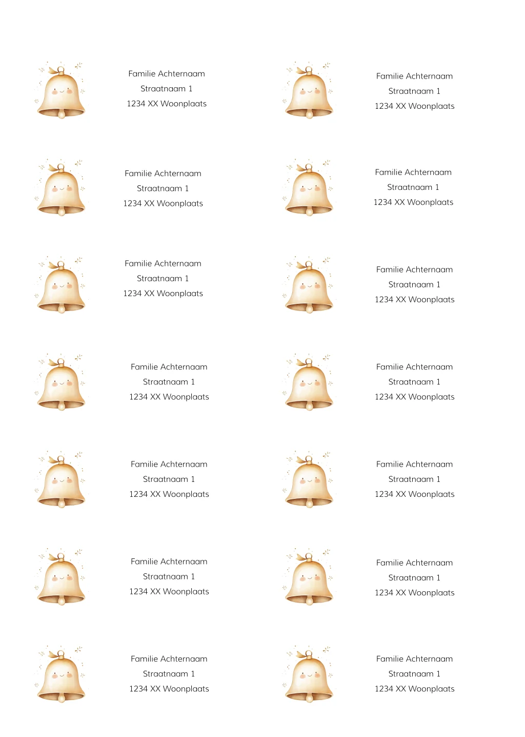Een vrolijk adresetiket met een lieve kerstbel en zachte details.