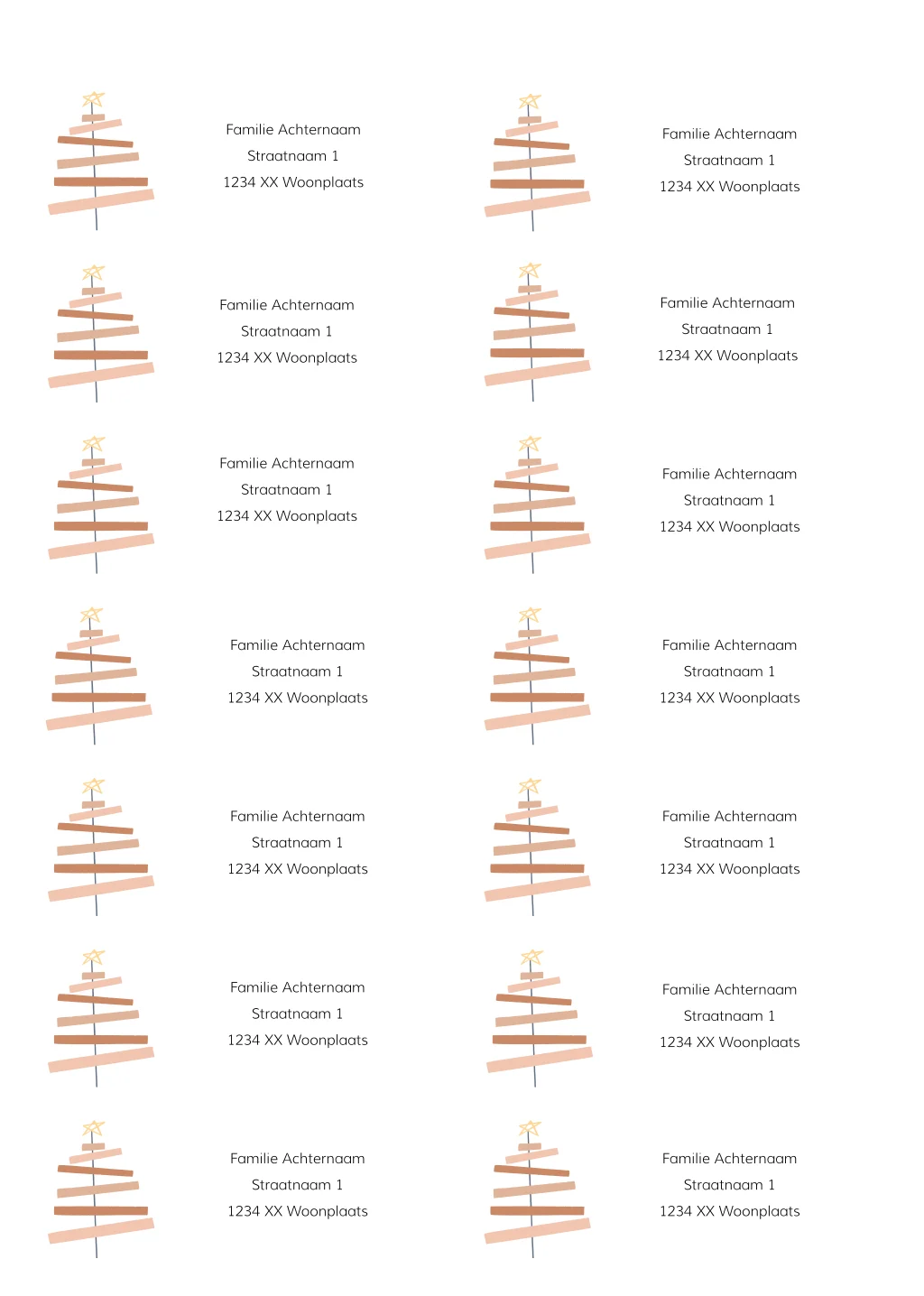 De adresstickers voor kerst met illustratie van een kerstboom met ster zijn een leuke en praktische toevoeging aan je feestelijke post tijdens de feestdagen. Met deze adresstickers bespaar je tijd en moeite bij het schrijven van adressen met de hand, terwijl je toch een persoonlijk en feestelijk accent toevoegt aan je kerstpost.