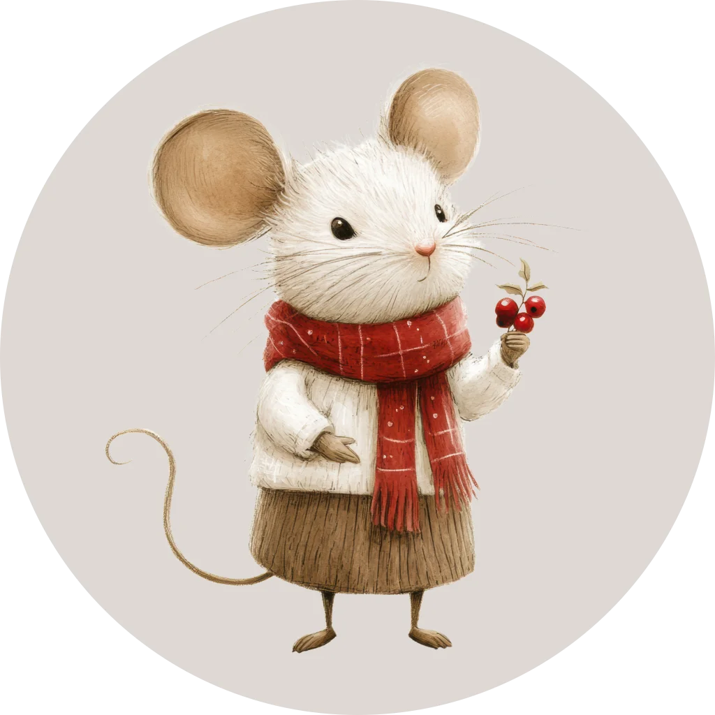 Versier je kerstcadeaus en kerstkaarten met deze schattige kerst sluitzegels met een illustratie van een lief muisje met besjes.