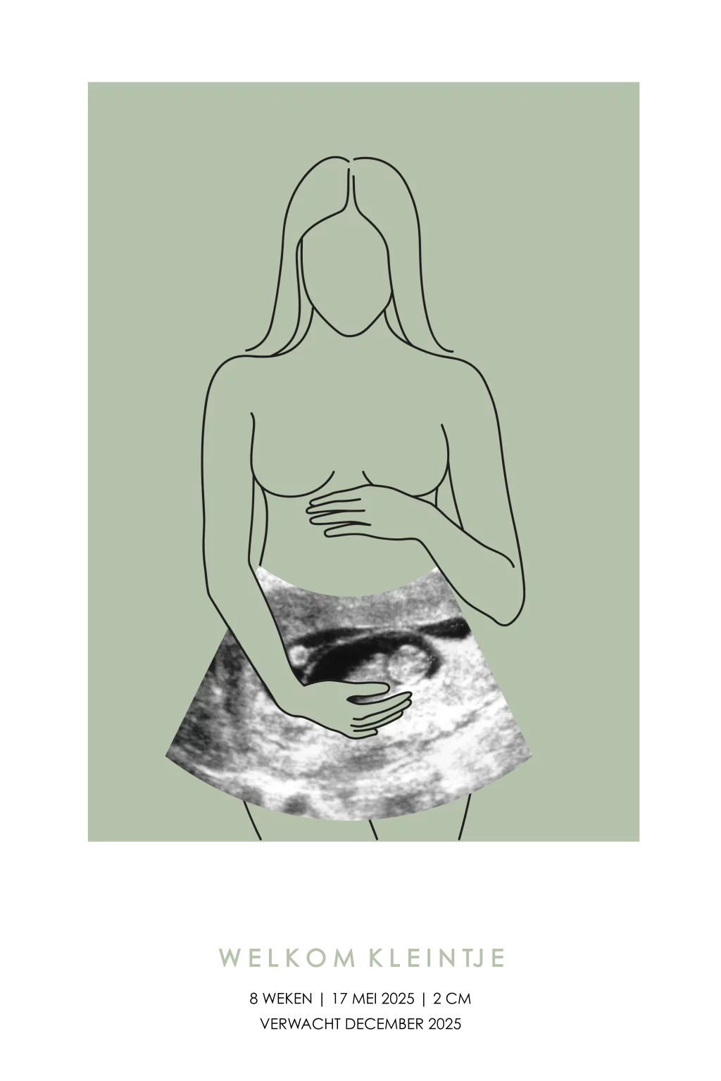 Deze poster op groot formaat met lijnillustratie en foto van de echo is een blijvende herinnering aan je zwangerschap. Perfect voor het aankondigen van een zwangerschap of als een bijzonder cadeau voor een aanstaande moeder.