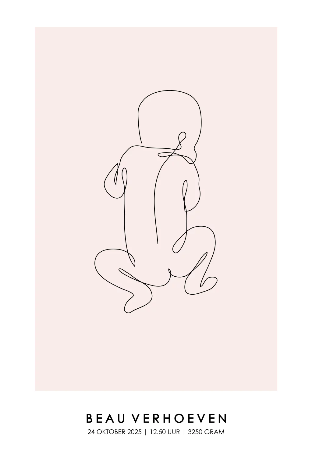 Geboorteposter baby lijntekening roze | Persoonlijk en stijlvol cadeau