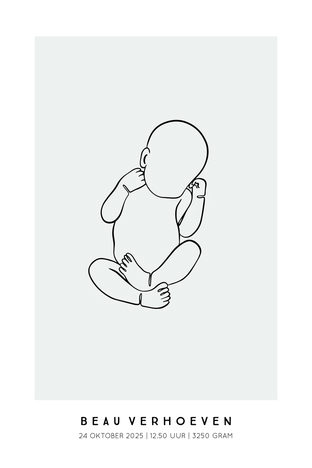 Geboorteposter baby lijntekening - Groen 40x60 cm | Minimalistisch geboortecadeau