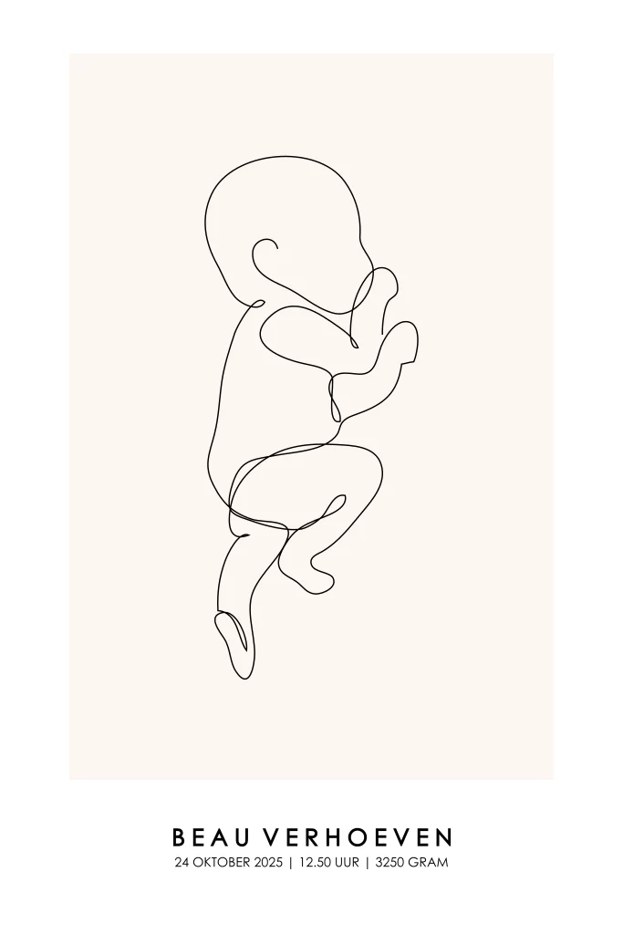 Geboorteposter baby - Lijntekening vanille | Minimalistisch en stijlvol