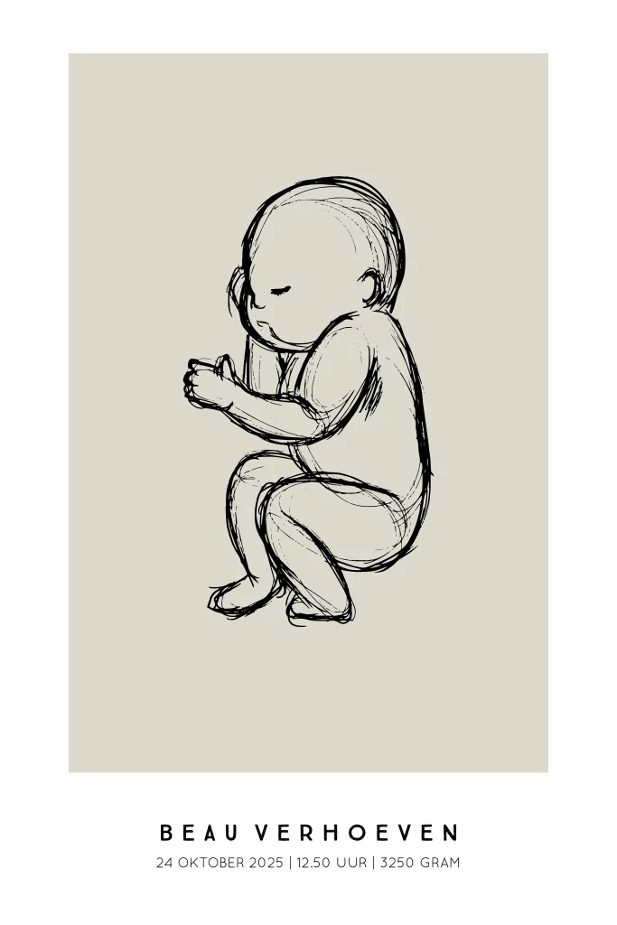 Geboorteposter baby schets - Beige achtergrond | Minimalistisch en stijlvol
