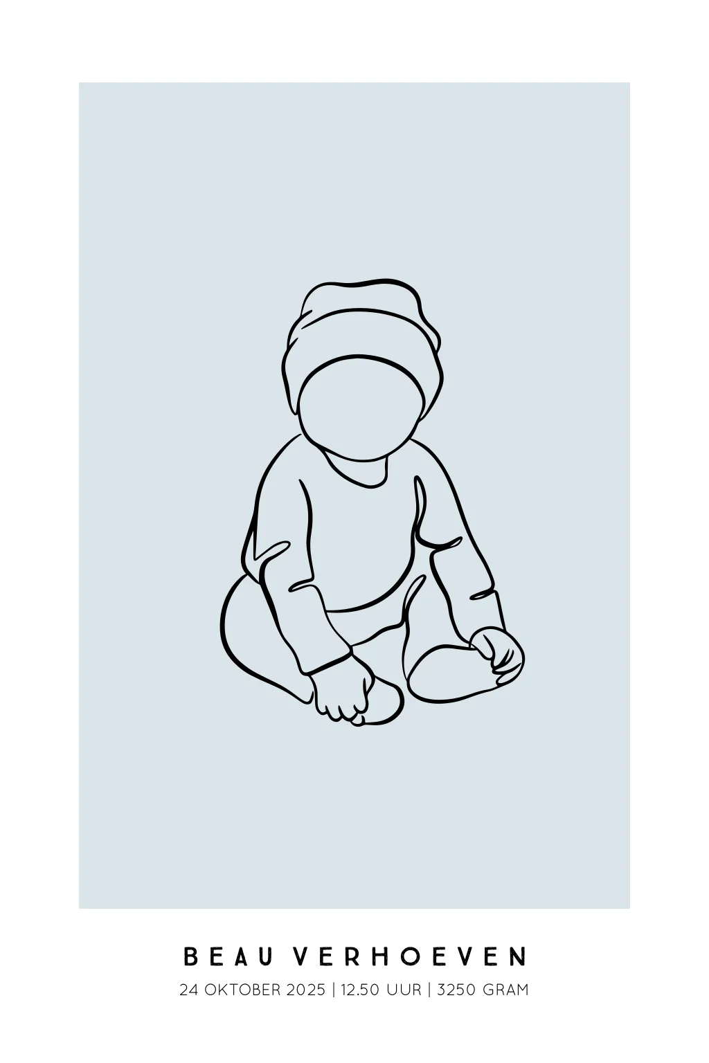 Geboorteposter baby - Lijntekening blauw 40x60 cm | Minimalistisch & stijlvol ontwerp