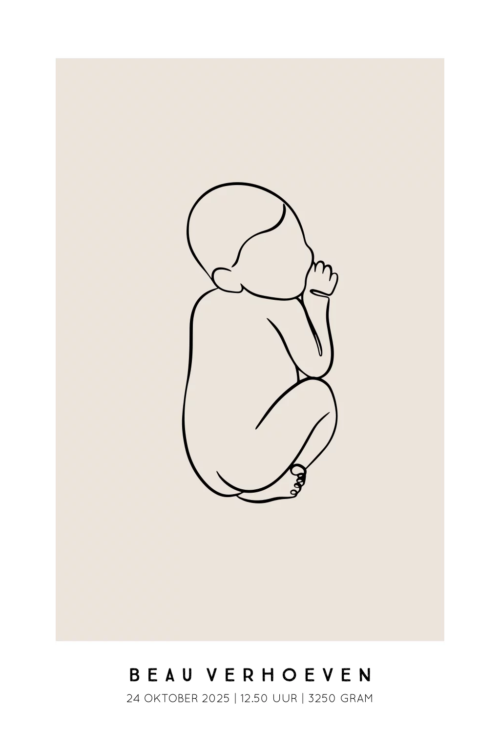 Geboorteposter baby lijntekening naturel 40x60 cm | Tijdloos geboortecadeau