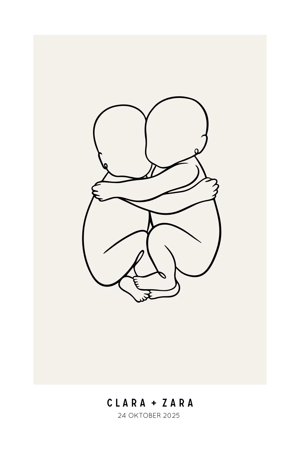 Geboorteposter tweeling - Lijntekening 40x60 cm | Uniek en persoonlijk ontwerp