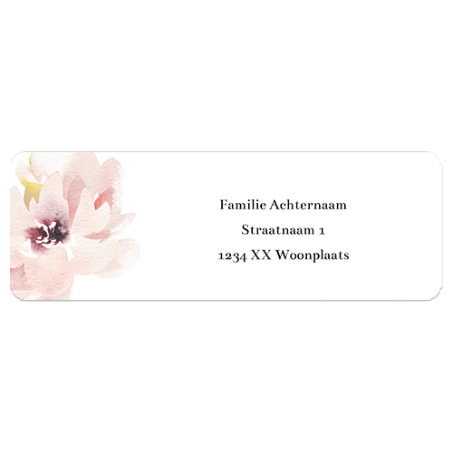 Adressticker romantische trouwkaart bloemen roze waterverf