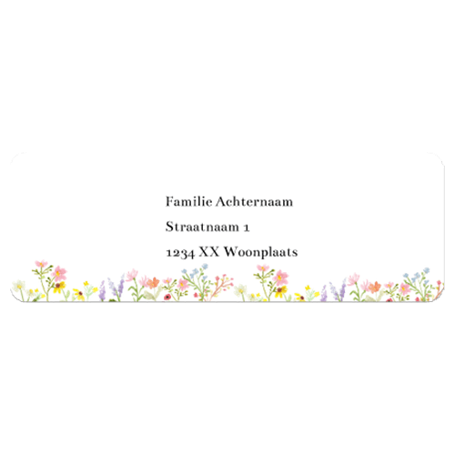 Adressticker voor trouwkaart met kleurrijke veldbloemen