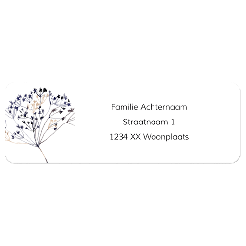 Handige adresstickers in de stijl van jullie trouwkaart met paarse droogbloem. Je kunt het design zelf aanpassen en de adressen invullen.
