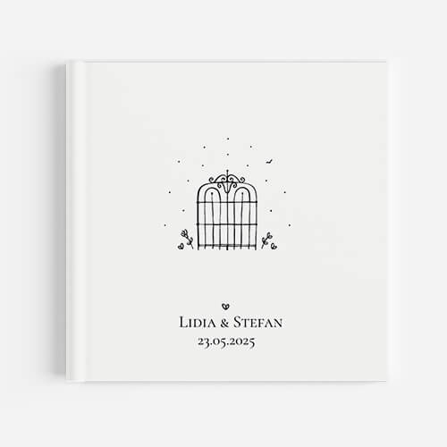 Dit romantische gastenboek met illustratie van hekje en bloemetjes past mooi bij de bijpassende trouwkaart en trouwbedankjes.