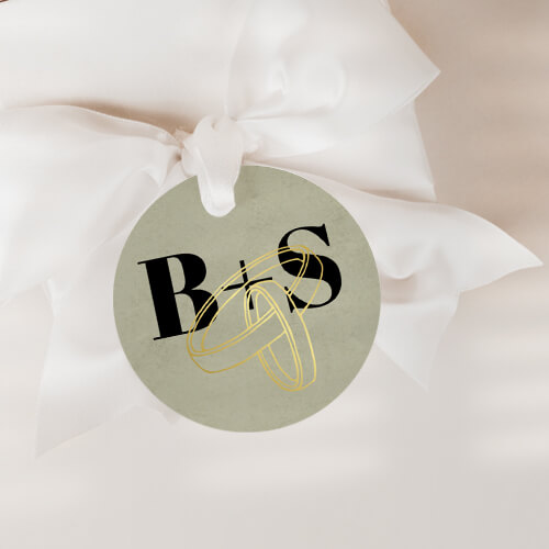 label trouwbedankjes groen velvet trouwringen intialen | 16 stuks