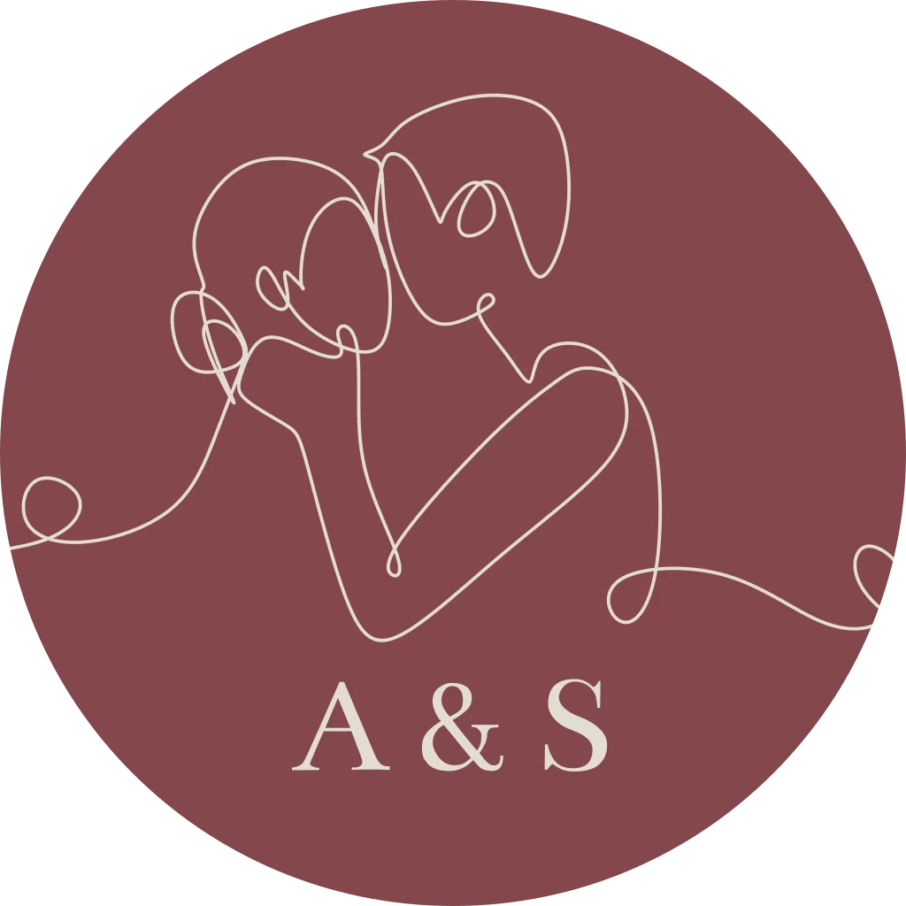 Sluitzegel met een lijnillustratie van een verliefd koppel. Deze sticker kun je zelf personaliseren door bijvoorbeeld jullie initialen toe te voegen of de kleuren te veranderen.