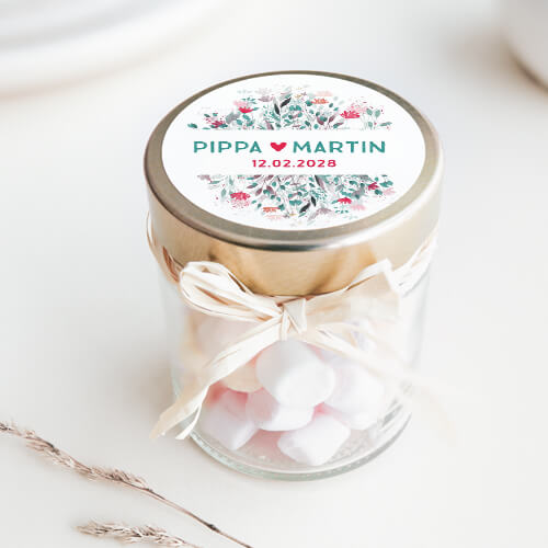 Wanneer je op zoek bent naar een uniek en kleurrijk bedankje voor je huwelijk, dan zijn onze ronde sticker bedankjes perfect voor jou! Elke sticker is versierd met een rode bloemen met een kader voor jullie namen of andere tekst.