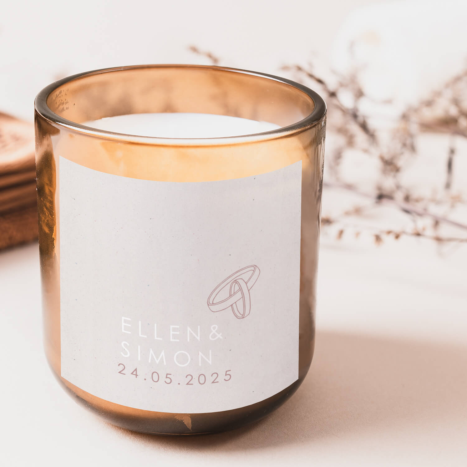 Op zoek naar unieke trouwbedankjes? Onze prachtige sticker voor trouwbedankjes met tekening van trouwringen zijn perfect voor het toevoegen van een persoonlijk tintje aan jullie speciale dag. Kleuren en lettertypes zijn naar wens aan te passen in de online editor. Combineer met de andere items in ditzelfde thema voor een complete look van jullie grote dag.