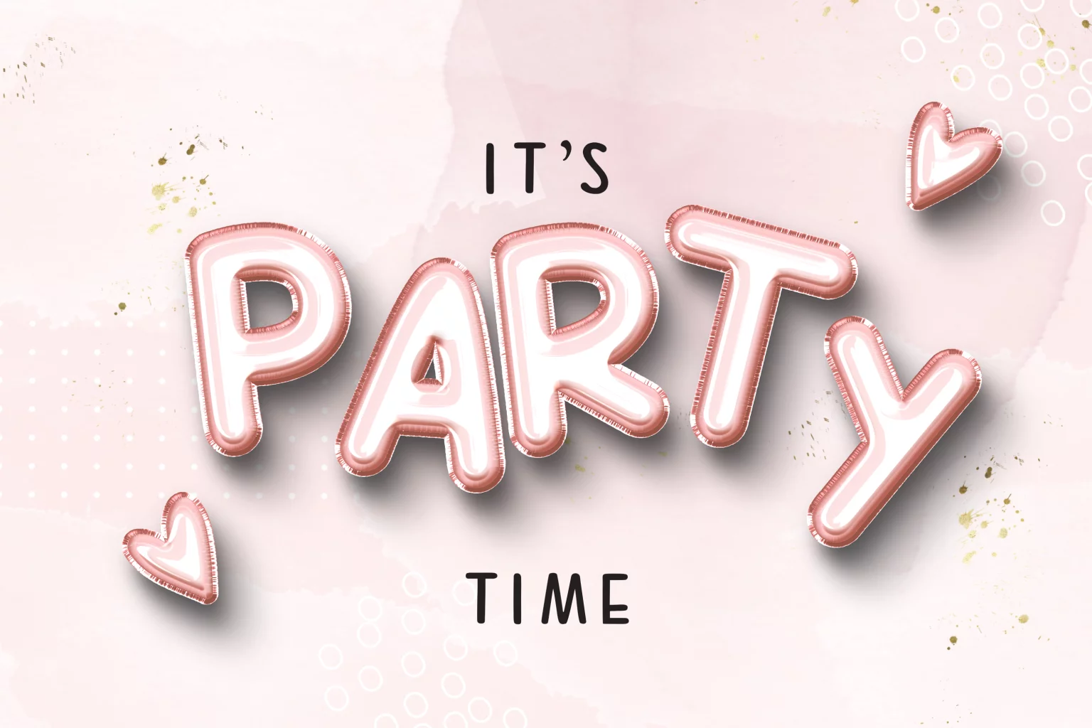 It's Party Time! Stuur vrienden en familieleden een leuke uitnodiging in roze met ballonletters.