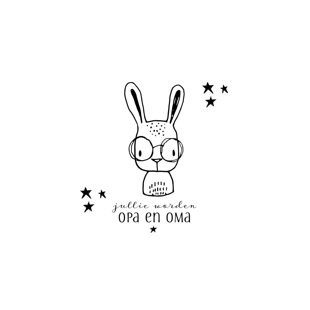 Jullie worden opa en oma Verras je (schoon)ouders met deze originele zwangerschapsaankondiging. Met lief konijntje en sterretjes op de voorzijde. Aan de binnenzijde is ruimte voor een (echo)foto, dit maakt het kaartje extra persoonlijk.