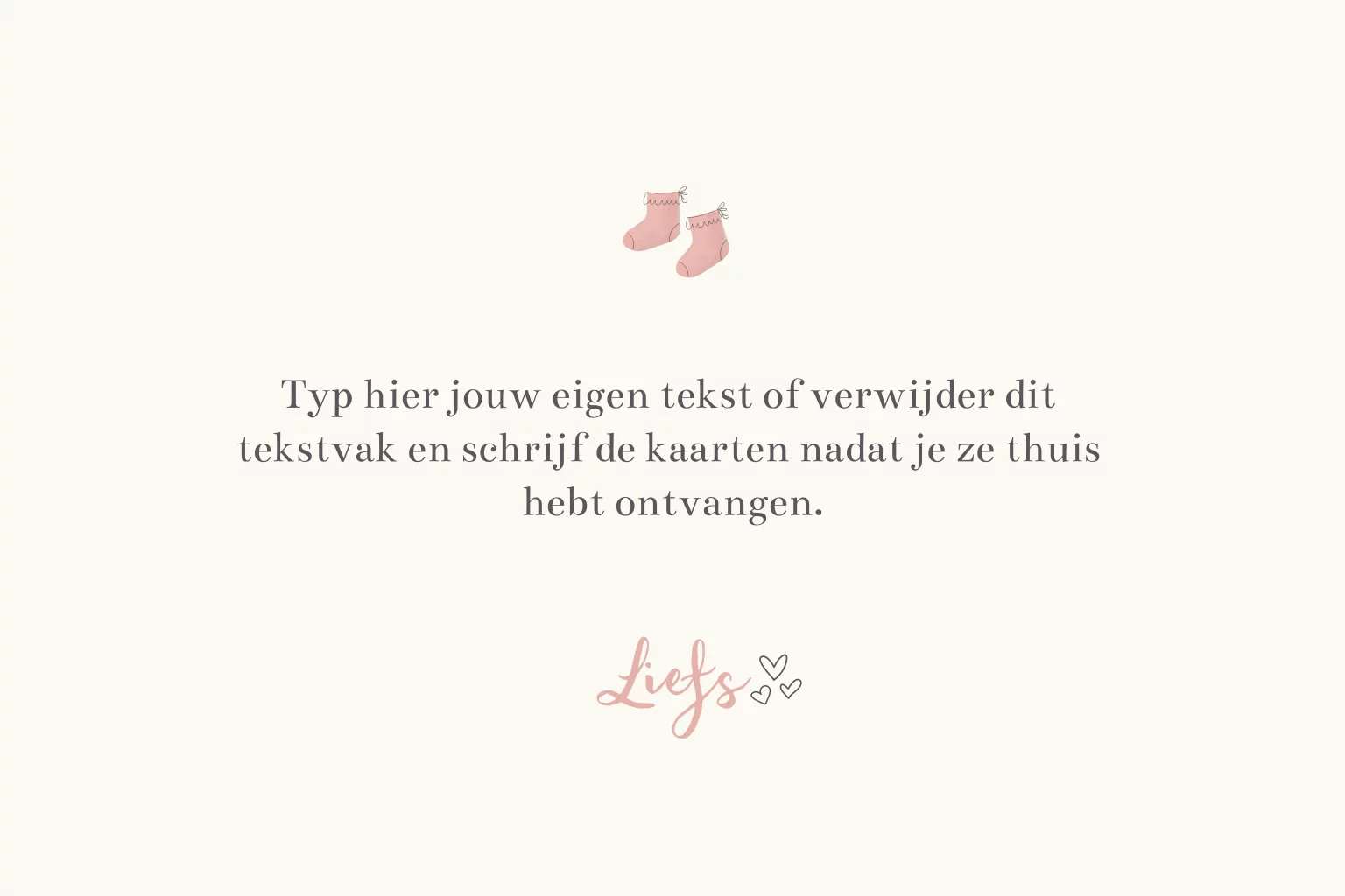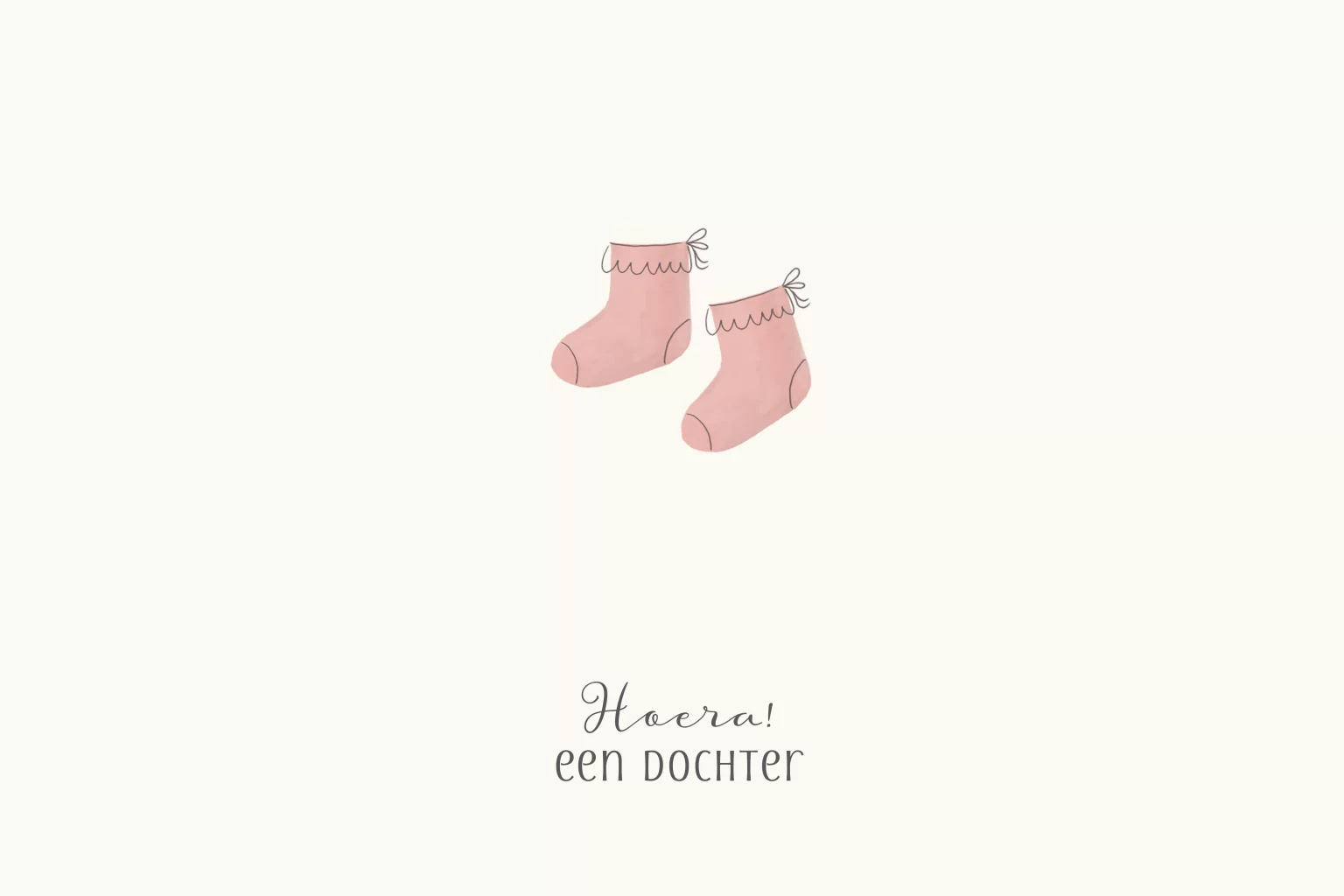 Lief kaartje om te sturen wanneer er een dochter geboren is. Met roze babysokjes en de tekst Hoera! Een dochter. De tekst op de binnenzijde van de kaart kan eenvoudig aangepast worden in de online editor.
