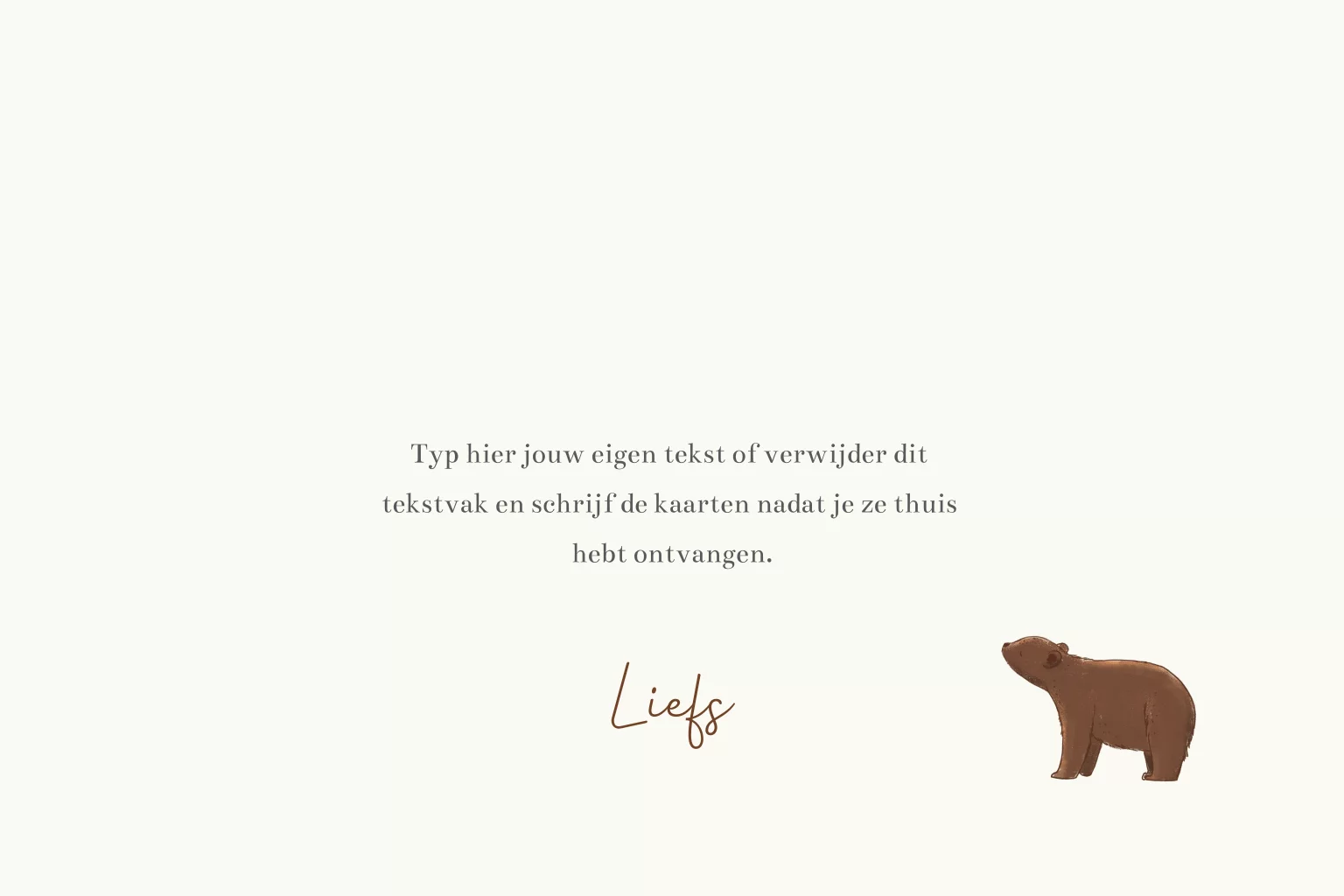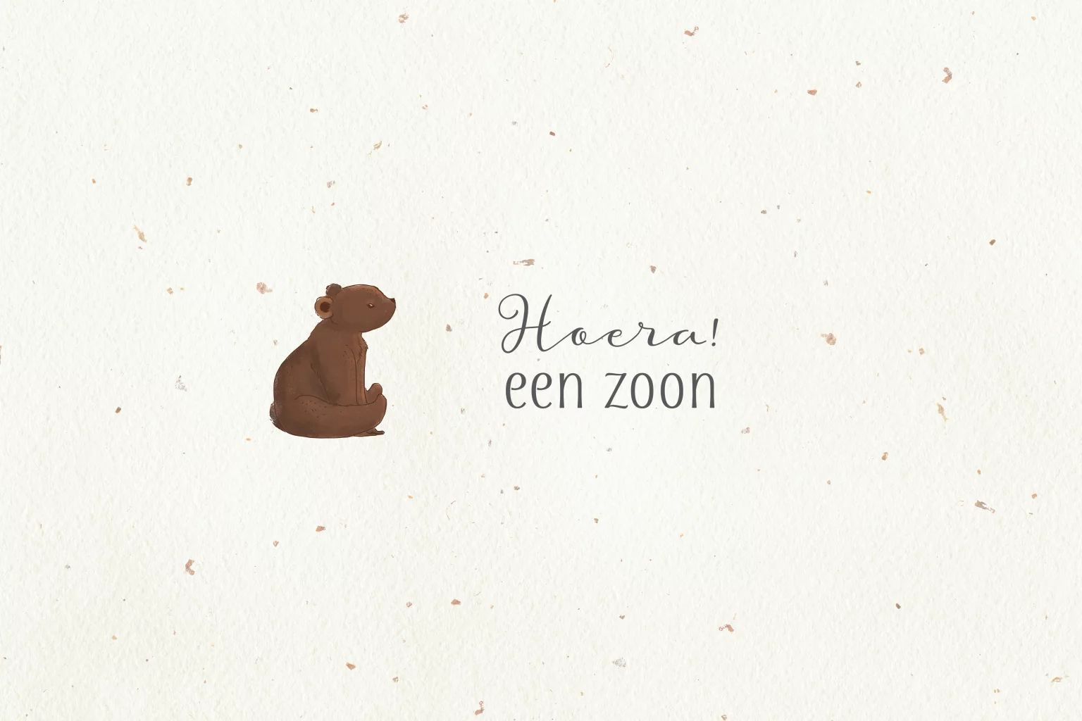 Leuk kaartje om te sturen aan de kersverse ouders wanneer er een zoon geboren is. Met lief beertje en de tekst Hoera een zoon. De tekst aan de binnenkant van de kaart kun je eenvoudig aanpassen in onze online editor, zodat je een persoonlijke boodschap kunt toevoegen.