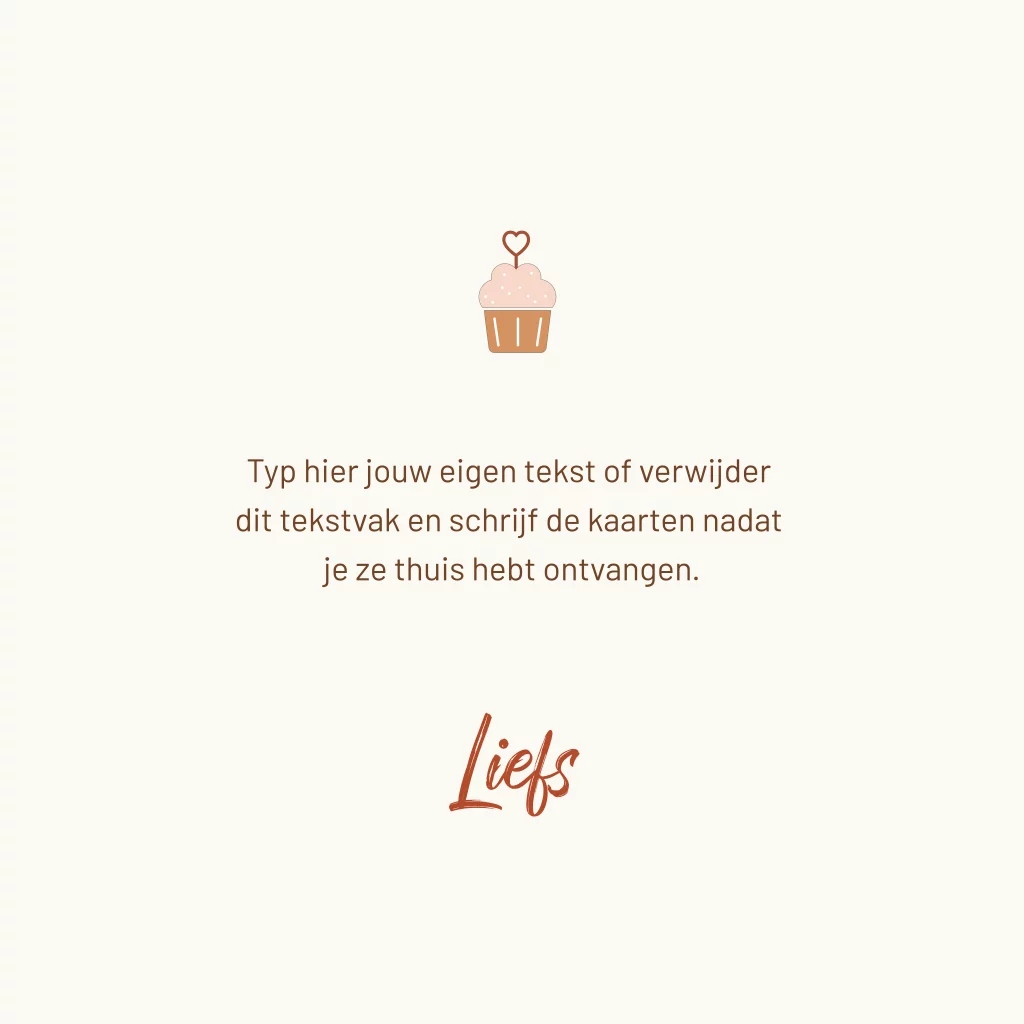 Een leuke verjaardagskaart met op de voorzijde een cupcake en de tekst Happy birthday to you in aardetinten. Deze kaart is ook verkrijgbaar in blauwtinten. Aan de binnenzijde is ruimte voor een persoonlijke boodschap voor de jarige.