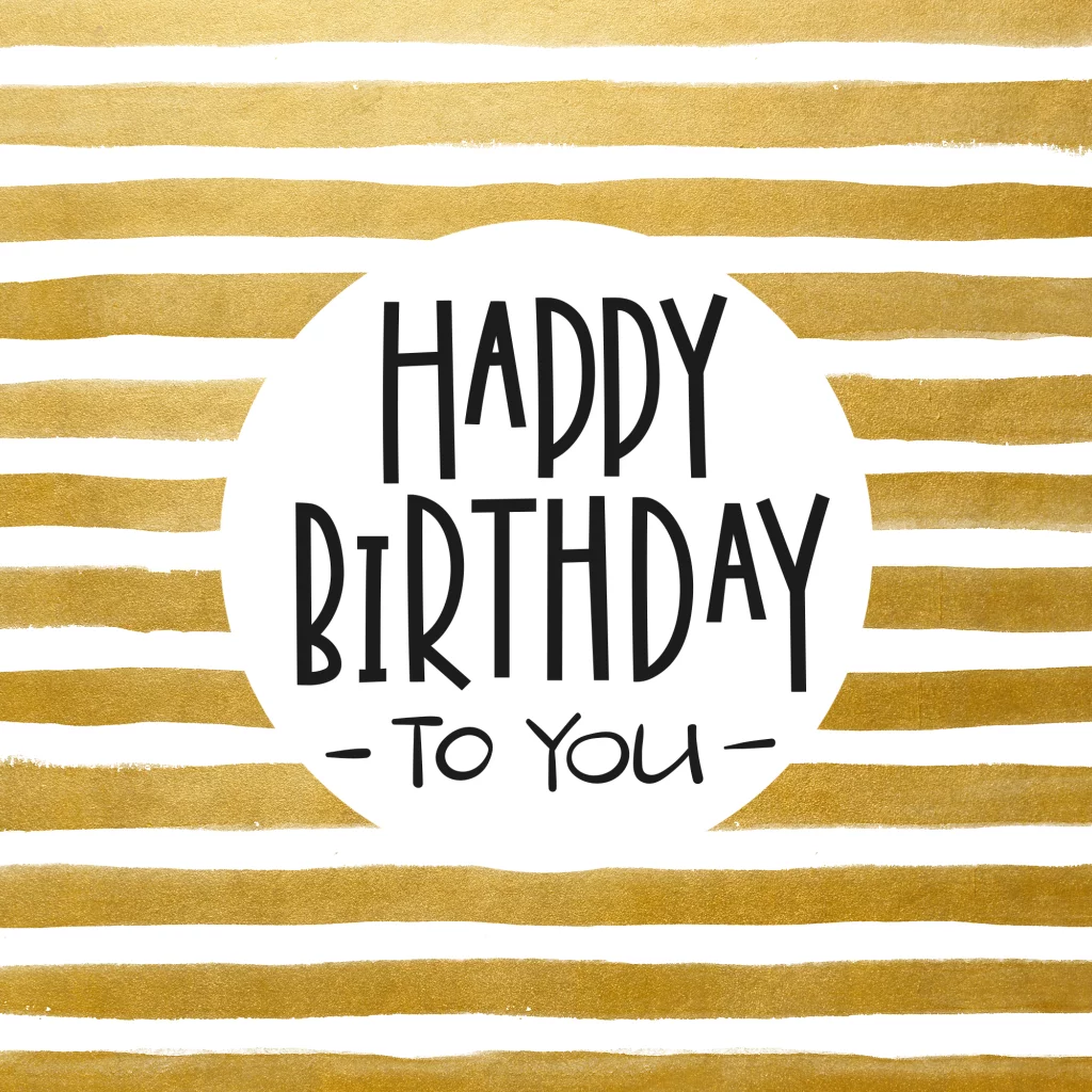 Vrolijke verjaardagskaart Happy Birthday to you gouden strepen