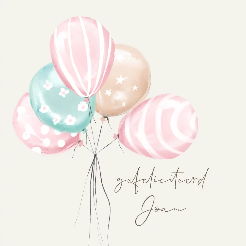 Verras iemand met deze leuke gepersonaliseerde wenskaart. Met getekende ballonnen in roze en blauw. Leuk voor een verjaardag maar ook voor een zwangerschap of babyshower. De teksten, lettertypes en achtergrondkleur kunnen eenvoudig aangepast worden in de online editor.